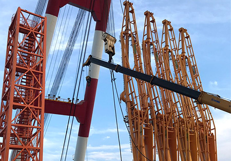 青島某企業(yè)起重船安裝,與我司的合作,圓滿順利完成。此次項目的完成,先后經(jīng)過試驗、試吊后,于7月8日錨地起航,奔赴施工地點,于14日下午到達指定地點,連夜拋錨定位。